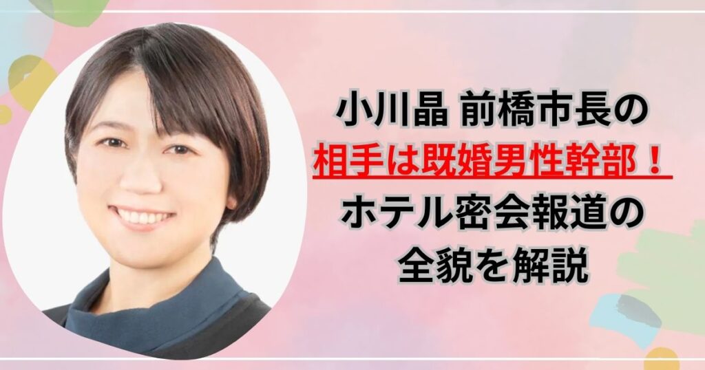 小川晶氏に関する密会疑惑が世間を騒がせています。 小川晶氏がラブホテルに頻繁に通っていたという報道があり、その相手とされる人物に既婚かつ幹部職員との情報が流れています。 世間ではこの疑惑を巡る市民の怒りや批判の声が次々と挙がっており、信頼... -