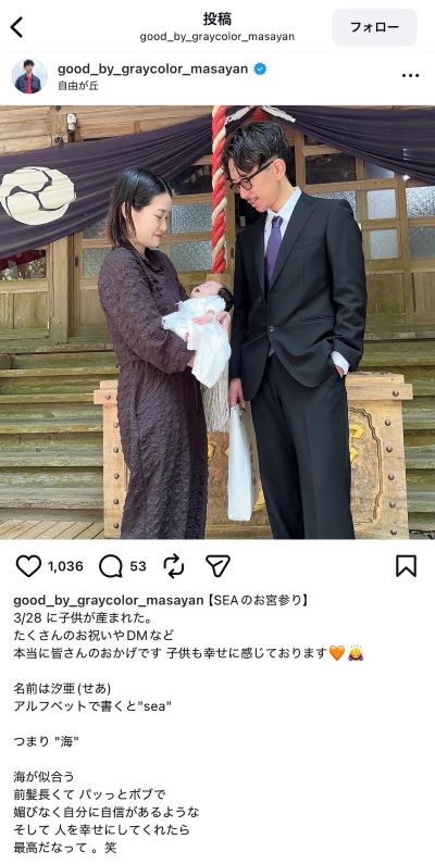 Instagramでお宮参り報告がありましたが、詳細は非公開です。